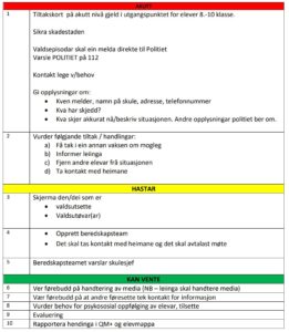 Vedlegg 2 - Tiltakskort; Alvorlege hendingar vald og trugslar